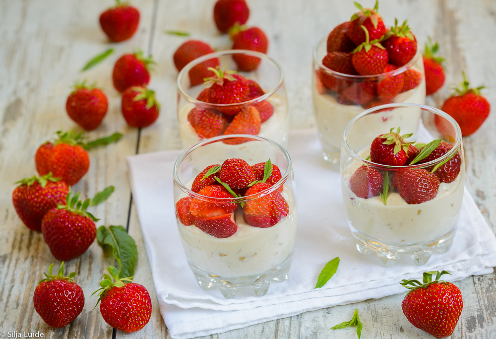 Üks mahlane halvaa ja maasikatega juustukoogi retsept sai laupäval LP-sse koos väikese jutuga maasikate kasulikkusest. Halvaaga kohupiimakreem on erakordselt lihtne, aga ega kodumaised magusad maasikad vajagi enda kaaslaseks midagi peent - need on ka niisama hullult head!!! Et magustoit on kiire ja kerge valmistada, siis sobib see suurepäraselt ka hommikusöögiks. Pokaalide asemel võib kreemi serveerida purkides, et saaks piknikule või aiapeole kaasa võtta. Maasikate asemel sobivad loomulikult ka muud marjad, nt vaarikad ja mustikad.